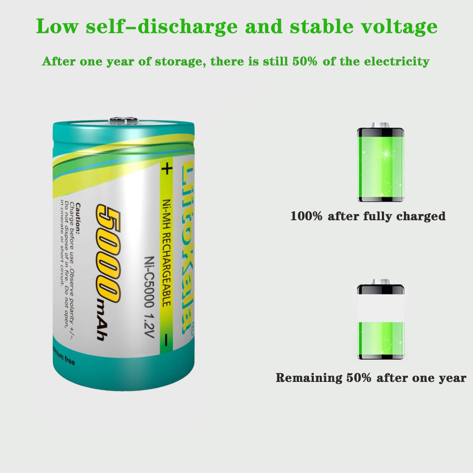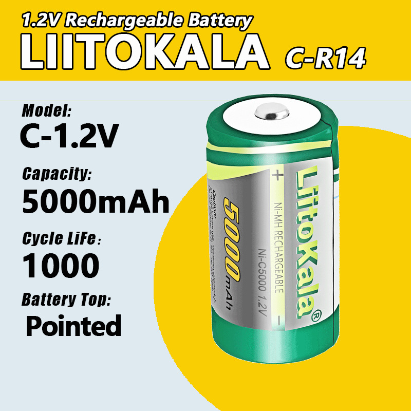 1.2V 5000mAh C/R14 Size Battery NiMH 5000mAh Supper Low Self Discharge Rechargeable Batteries High Capacity Battery