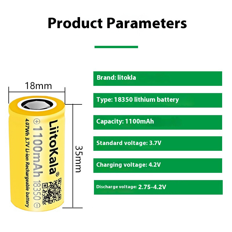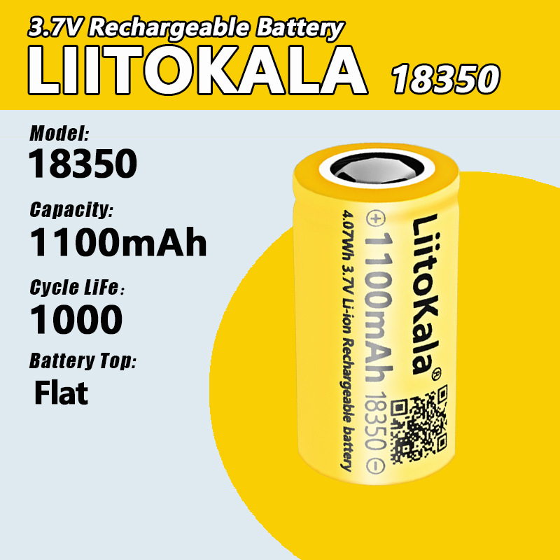 LiitoKala Li-ion 18350 Battery 3.7V 1100mAh Rechargeable Battery Lithium 1100mAh Batteries for Camera LED Flashlights Doorbells