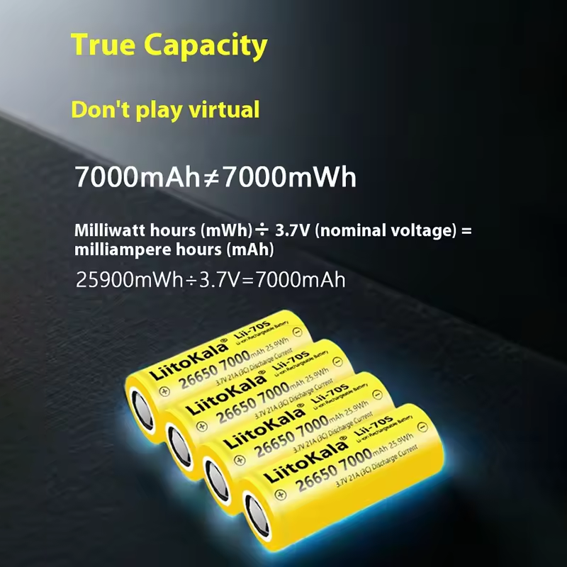 5. Rechargeable lithium-ion battery 26650.