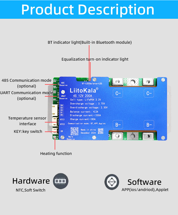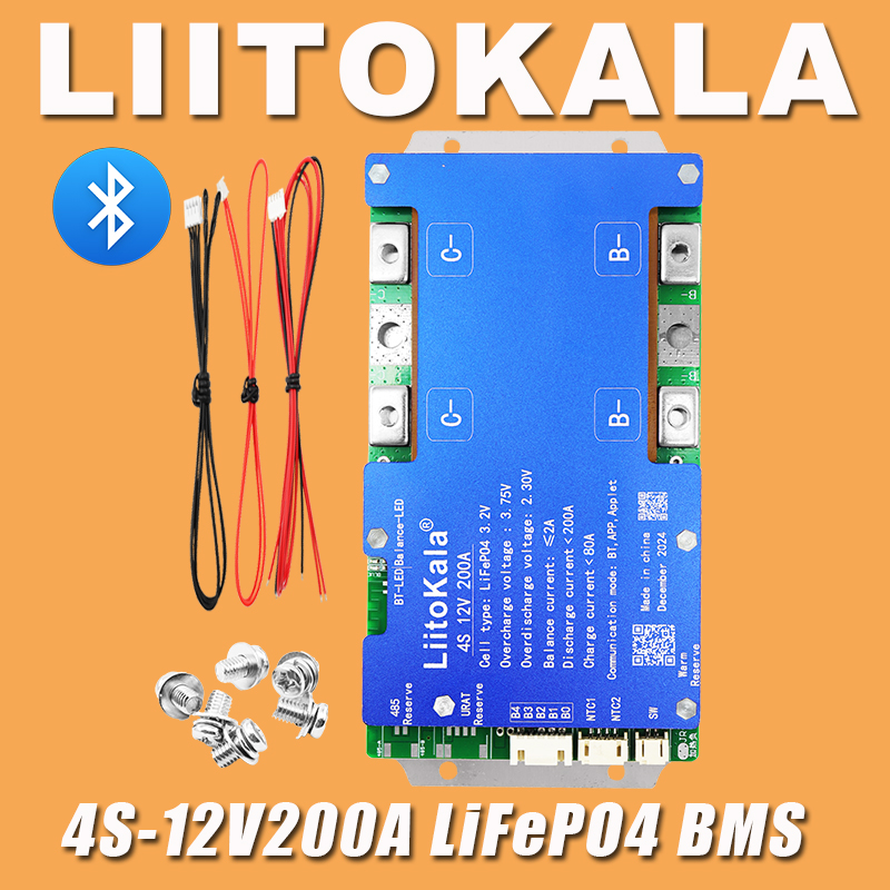 LiitoKala Bluetooth 4S-12V200A Smart BMS Lifepo4 With Car Starting Power Uart Series Heat Passive Balance Function Built-in Bluetooth BMS