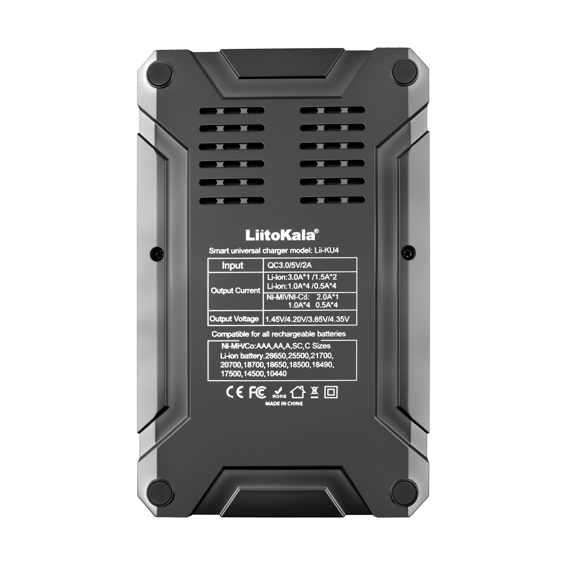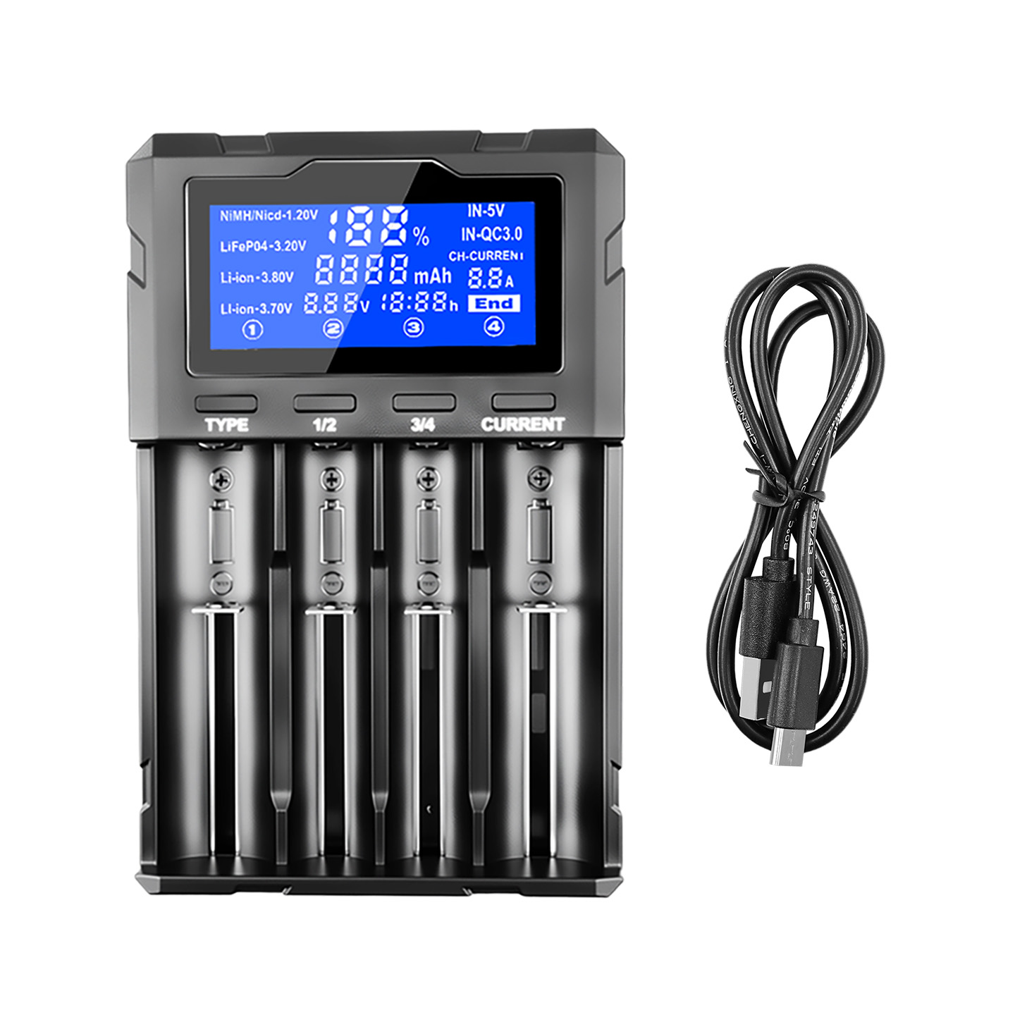 | 1 | Four-slot independent charging with microcomputer management, supports multiple battery types (Li-ion, NiMH, LiFePO4, etc.) | 157mm×100mm×33mm | 201g (excluding cable) |