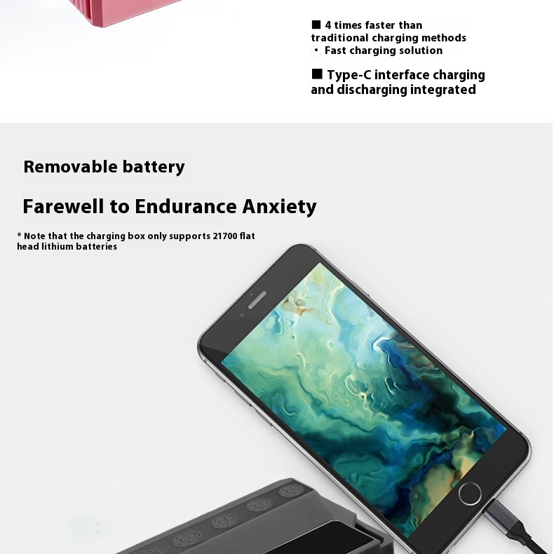 Applicable battery: 21700 cylindrical lithium battery