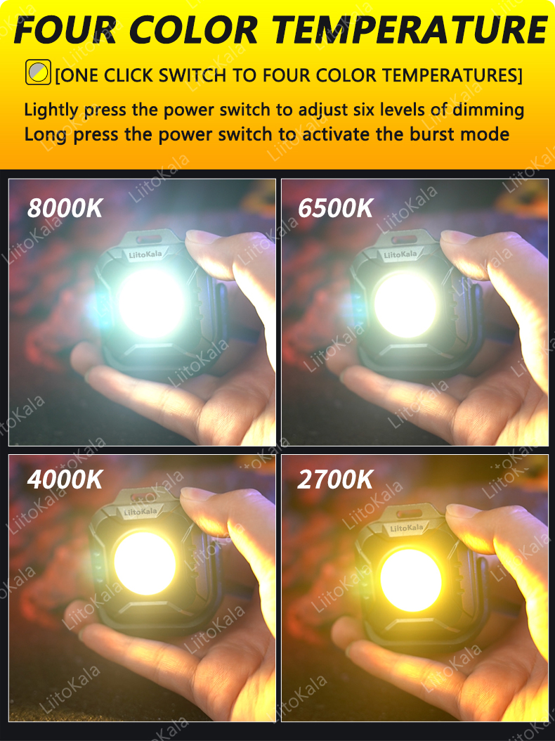 Color temperature: Color temperature adjustment 2700-800OK four levels